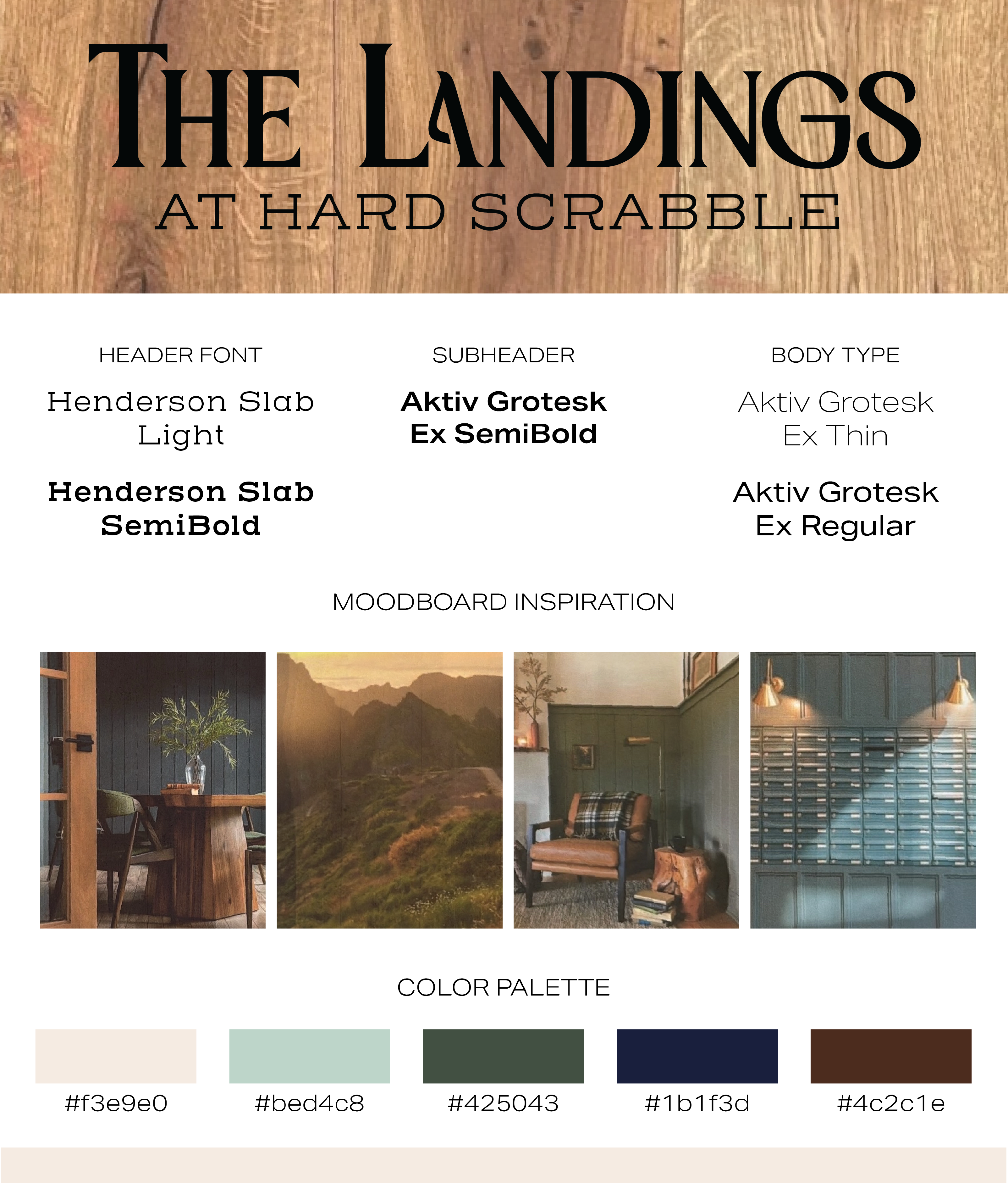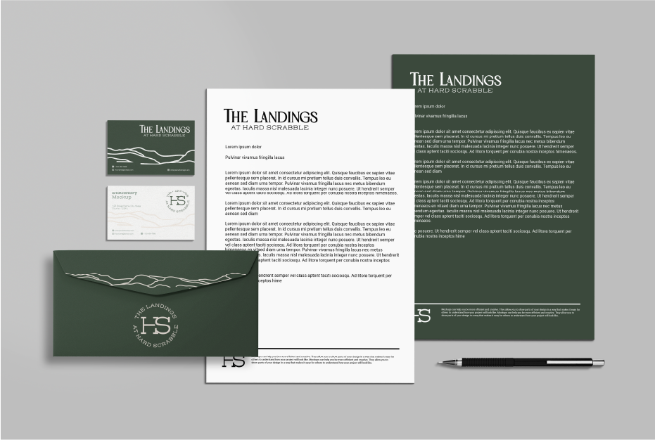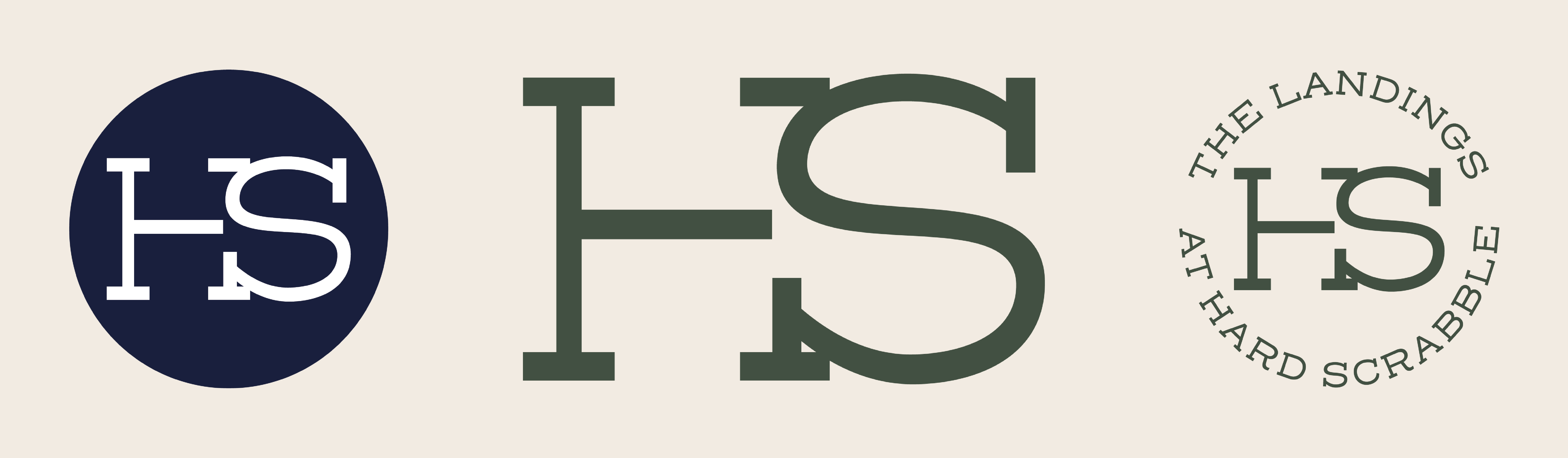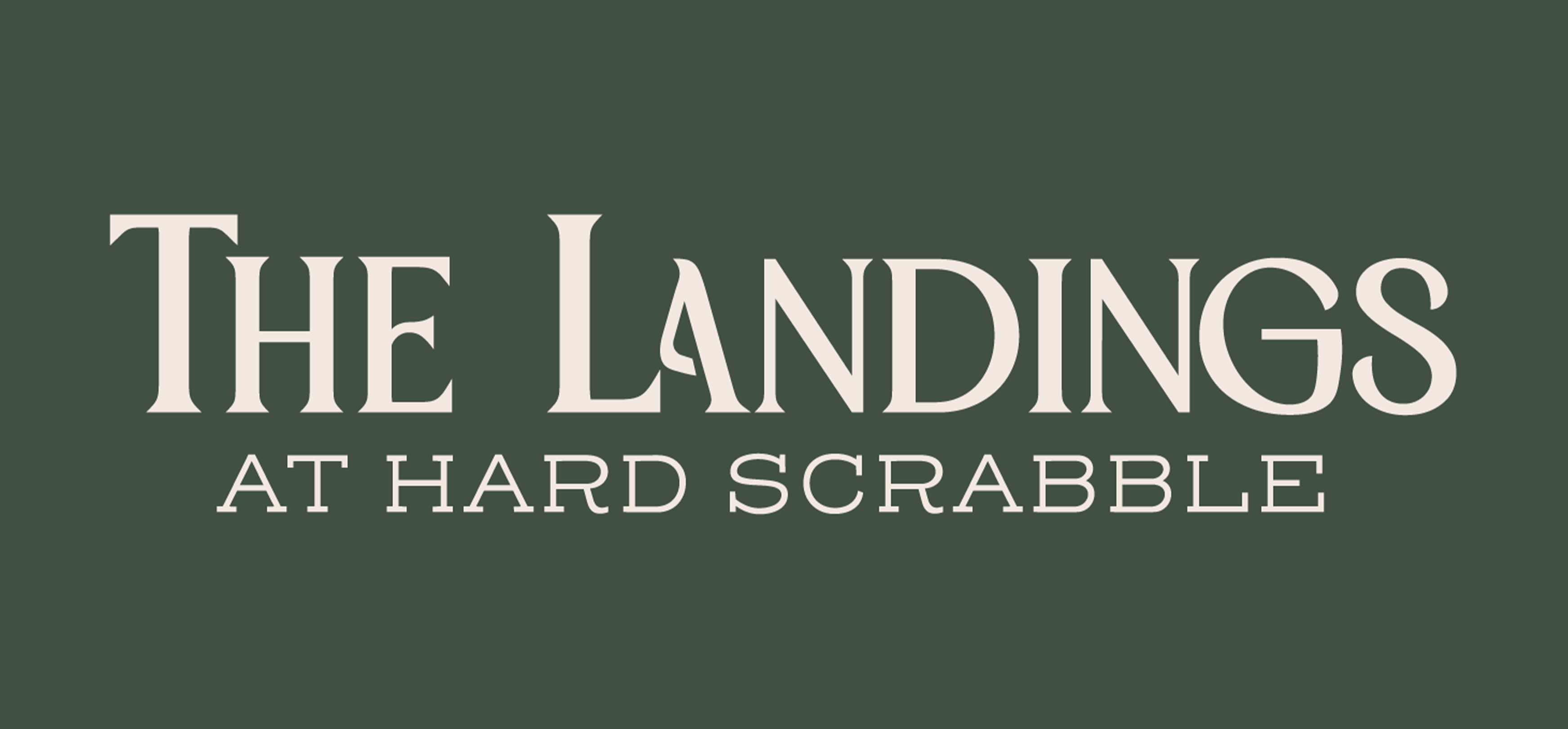 Branding for The Landings at Hard Scrabble, a South Carolina property by Van Metre, includes the full development of custom logo concepts, color palettes, typography, and supporting visual elements. Hardscrabble is often used to describe challenging conditions or hard work. The term dates back to the early 19th century, first appearing in Lewis and Clark's journals, referring to an imaginary place "where a livelihood may be obtained only under great hardship and difficulty.”